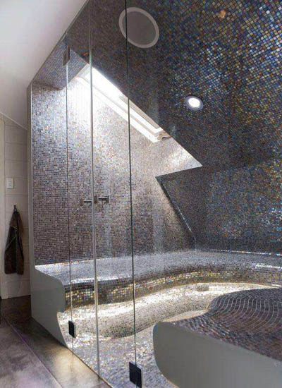 墻面和地面采用大理石、馬賽克或者普通瓷磚鋪設