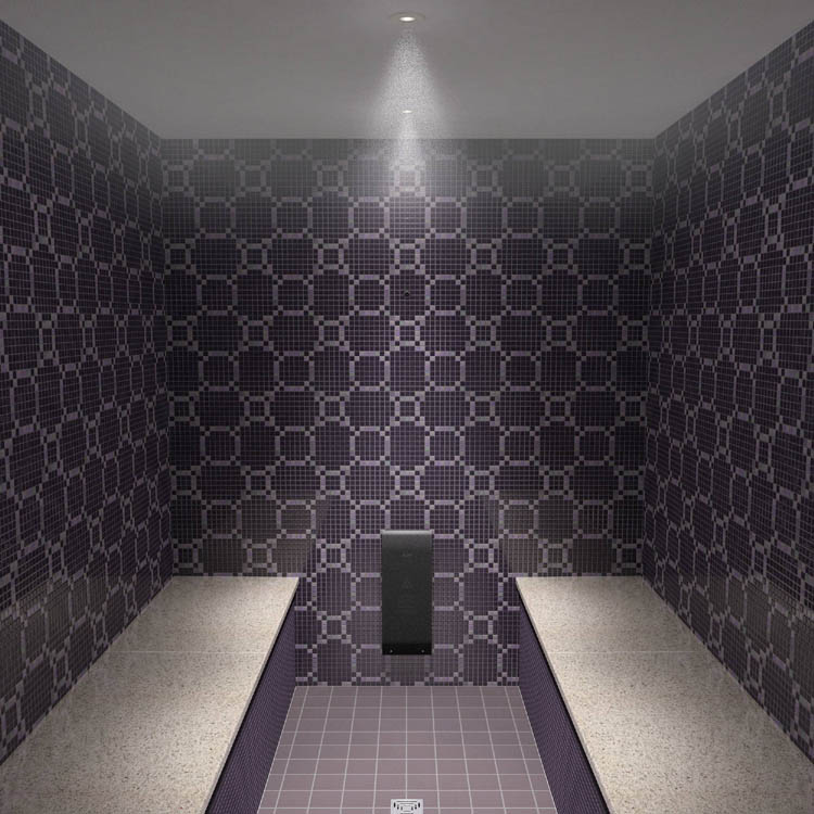 墻面和地面采用大理石、馬賽克或者普通瓷磚鋪設(shè)